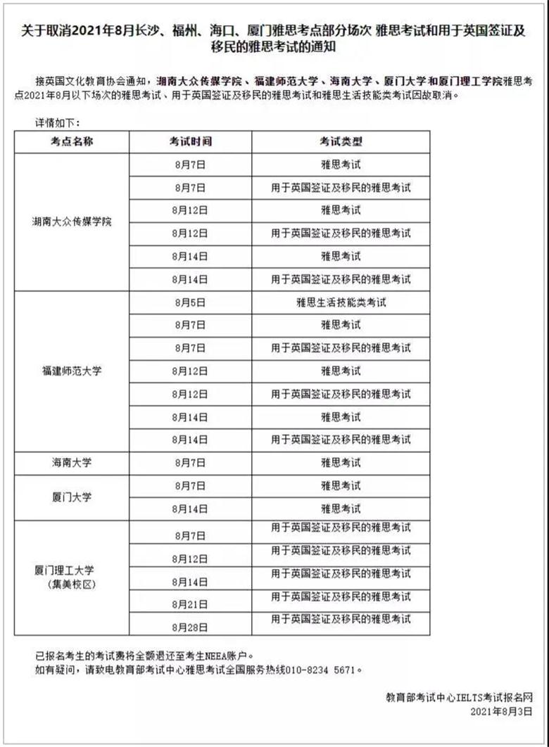 由于疫情影响,雅思官方为避免人群聚集,防范感染风险,发布取消多个地区考点,后续情况未定。