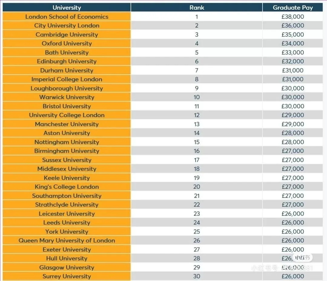 英国薪酬调查公司Emolument针对毕业生进入职场后的薪资标准调查数据显示,LSE毕业生以平均38,000英镑(年薪中位数)成为英国高校薪酬一位。