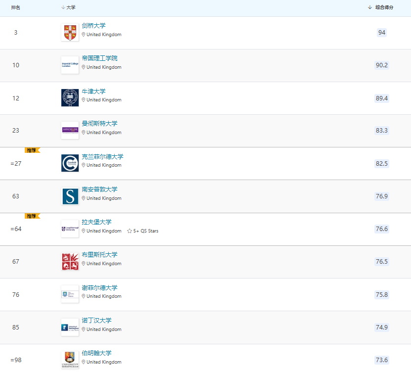 我们机械工程专业同学在选择专业的时候除去考虑QS综合排名,也可以在细化的Engineering & Technology 方向的机械专业排名中筛选学校和项目,做到综合排名和专业排名的兼顾,为未来就业和科研都做好相应的准备!