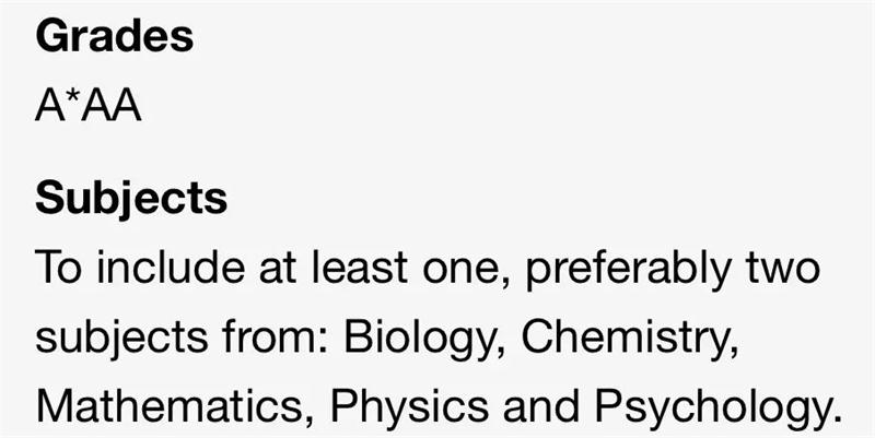 推荐学生们在A-level选课的时候至少选两门理科和一门包含写essay的学科,因为很多大学明确要求学生从生物、化学、数学、物理和心理中至少选一门,zui好两门。