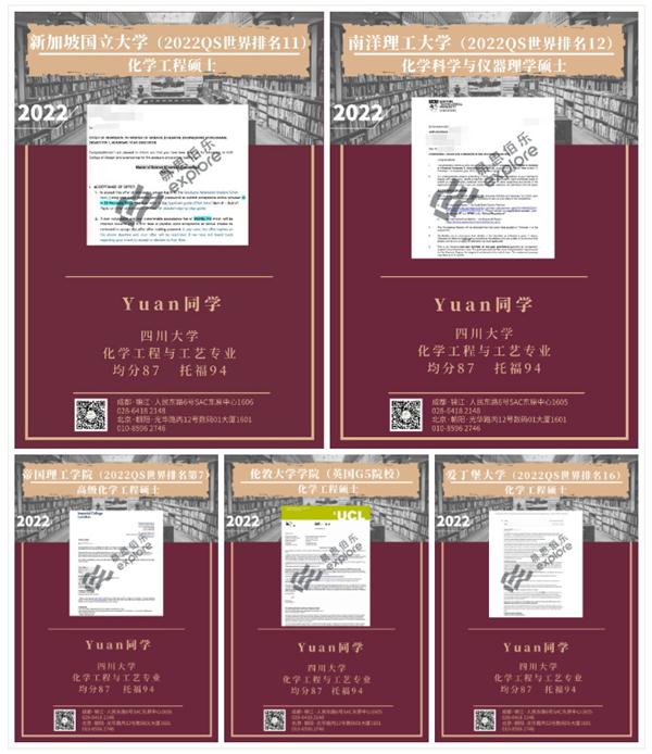 录取院校:新加坡国立大学、南洋理工大学、帝国理工学院、伦敦大学学院、爱丁堡大学
