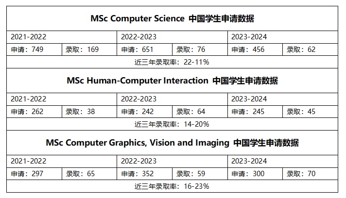 计算机方向从来没有停止过内卷,尤其是CS方向今年录取率整体呈下降趋势,虽然UCL的计算机科学专业是针对非计算机背景的同学开设的,很适合想转码的同学们。