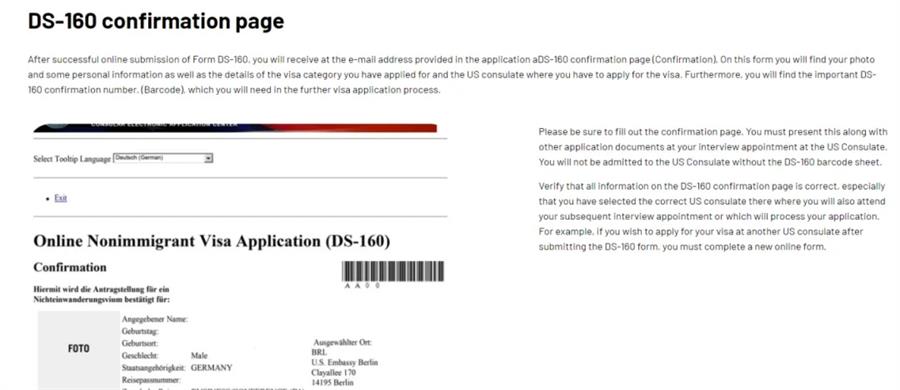 DS-160确认页(图源:usvisaservice)