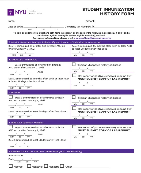 纽约大学疫苗历史表格(图源:纽约大学官网)