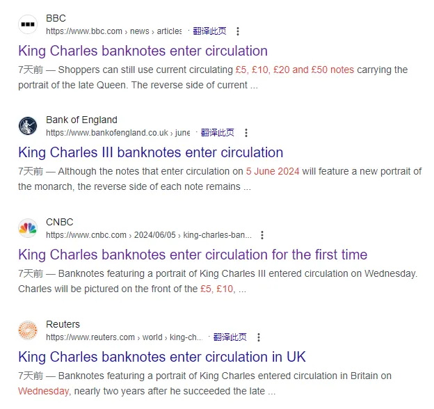 6月5日,英格兰央行开始发行印有英国国王查尔斯三世肖像的新版英镑,这是首批印有查尔斯国王肖像的新版塑料钞,替换了现行流通的英镑正面印制的英国女王伊丽莎白二世肖像。