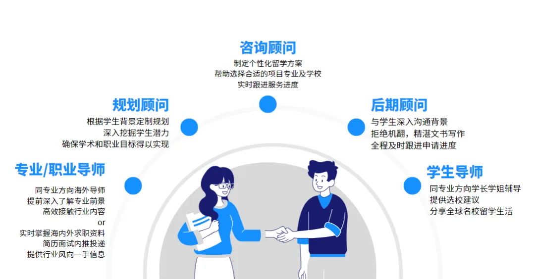 致力于为学生提供支持,包括但不限于个性化的职业规划、简历优化、实习机会、社交网络建设和就业支持,帮助学生在留学后顺利与职场衔接。