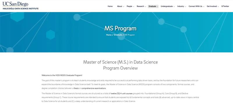 HDSI开设的数据科学硕士项目(图源:UCSD官网)
