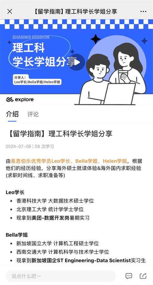 当然,为了更好地帮助计算机方向或者想要申请计算机相关方向的同学们更好地解决专业选择和未来就业的问题,我们特地为Explore的学员们准备了计算机方向的导师及课程资源~