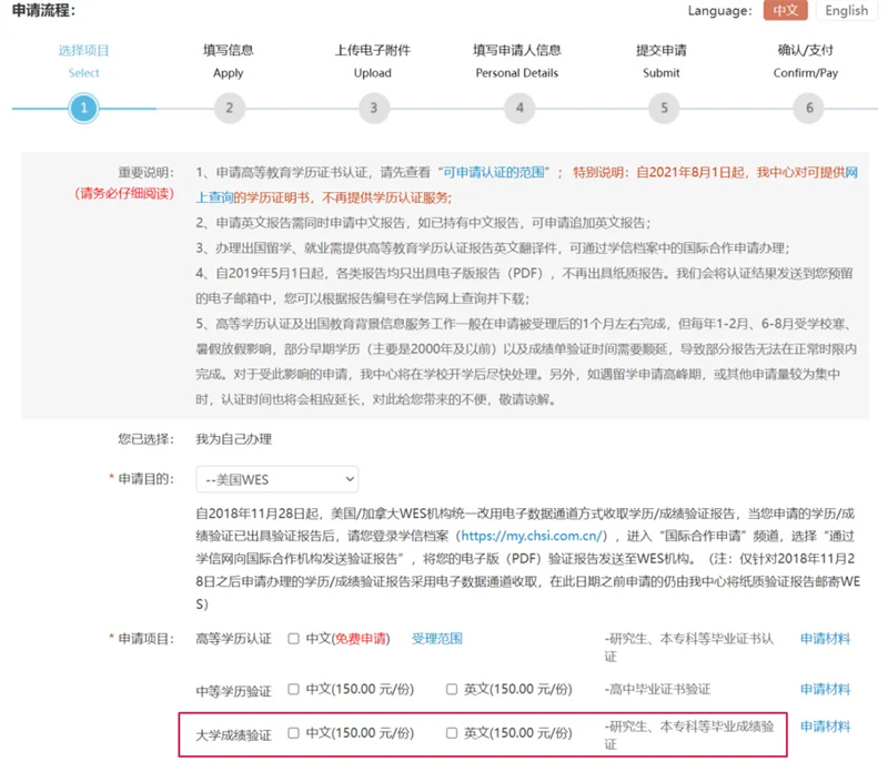 中英文认证弄好后,再从学信网把认证报告发给WES。