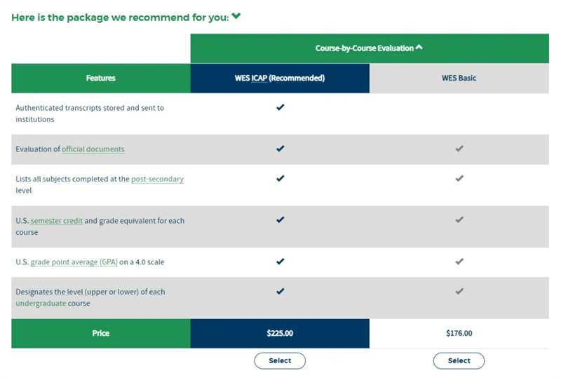 2️⃣ WES ICAP:高级认证服务包,它包括WES Basic服务的所有内容,同时提供额外的功能,如长期存档和自动更新服务,但价格上会贵45美元。