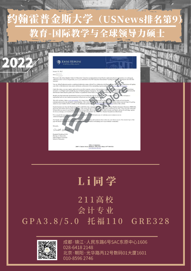 约翰霍普金斯大学 Li同学